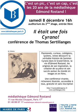 Conférence de Thomas Sertillanges sur l'histoire de nos Cyrano(s). Pour tous les passionnés, adultes, étudiants, lycéens et collégiens.