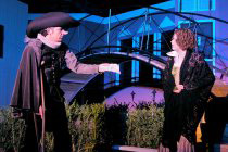 Mit einer in ihrer erzählerischen Geschlossenheit von Anfang an stimmigen und berührenden Inszenierung des Stücks «Cyrano» hat das Das Da Theater jetzt in seine Open-Air-Saison auf Burg Frankenberg eröffnet und dabei die Premiere trotz des heftig einsetzenden Regens tapfer durchgestanden.