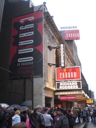 Pour illustrer mon propos j'évoquerai deux éléments. Tout d'abord le décor. On pourrait croire que nous sommes à Broadway, donc finalement pas très loin de Hollywood (surtout avec la distribution proposée), et que de ce fait de grands moyens ont été sollicités pour faire de chaque acte un tableau richement illustré. Il n'en n'est rien. Les décors sont plutôt sobres, avec un fond de scène qui reste identique tout au long de la pièce : un gigantesque mur de briques sombres, avec un escalier à paliers, descendant du haut, côté jardin, au bas, côté cour. Escalier par lequel arrivent, repartent, les comédiens, et sur lequel certains déclament leur texte (en anglais, cela va de soit, selon la traduction d'Anthony Burgess). Bref ce gigantesque mur de brique, avec cet escalier avaient des airs d'arrière cour de building new-yorkais ancien : premier exemple. Avant de divulguer ma seconde illustration, je termine sur le décor. Le fond reste donc identique, ce ne sont que quelques éléments centraux de la scène qui donne la situation de l'acte. Notamment un arbre mort, tantôt debout (scène du balcon), tantôt couché comme abattu (Arras), tantôt penché (curieusement), au dernier acte. A noter un très bel effet pour la scène du balcon : Un rideau blanc descend du plafond au sol, avec suspendu, au milieu, devant, le balcon, qui semble flotter dans les airs : très réussi. Autre réussite : les feuilles mortes rouges, contrastant avec le décor sombre qui tombent lascivement lors du dernier acte. Second « américanisme » : il faut bien que tout finisse à peu près bien, et donc, chose que je n'avais jamais vue dans aucune adaptation, alors que le pot aux roses est découvert, que Cyrano déclame ses dernières tirades, Roxane l'enlace et l'embrasse. Mais finalement, c'est vrai on est heureux. Enfin Cyrano a eu ce baiser tant désiré? Si vous percevez quelque peu d'ironie dans cette première partie, c'est normal, mais ceci étant dit, c'est globalement une belle adaptation. Kevin Kline compose un Cyrano flegmatique, assez réussi, mais tout de même très calme, ce qui pourrait en étonner plus d'un quand on sait que Cyrano achèvera la pièce sur le mot Panache. Et pourtant on est séduit par ce parti pris. Jennifer Garner est une des meilleures Roxane que j'ai vues : impertinente, insolente, prêtant main forte (brièvement) à Cyrano lors de son duel avec Valvert. On pouvait avoir peur qu'elle aille trop loin (l'héroïne d'Alias passe habituellement son temps à se battre et à multiplier les prouesses physiques), elle montre ici qu'elle peut être sensible et laisser de côté son trop plein d'énergie, pour aller dans une partition plus pausée. Seul Christian est à mon sens raté. Il est présenté comme un personnage caricatural, profiteur, écervelé, on est loin de l'interprétation en finesse d'un Vincent Perez (mais c'était du cinéma?). Christian mérite mieux. C'est tout de même lui qui dit à Cyrano qu'il n'a pas le droit de lui voler son bonheur?et c'est encore lui qui lui « jette » tous ces nez à la figure? Le personnage est donc loin d'être un jeune irréfléchi tout feu tout flamme. Mention spéciale à l'interprète de Le Bret (John Douglas Thompson), qui joue un parfait confident, et dont la voix grave est impressionnante. La mise en scène de David Leveaux est alerte et très mouvementée. Elle propose une vraie fluidité entre chaque scène, et les enchaînements se font très rapidement (pas de temps mort). Pourtant au final il manque un je-ne-sais-quoi d'émotion qui pourrait définitivement faire chavirer le public. L'adaptation à trois avec Jacques Weber, récemment jouée à la Sorbonne était tellement plus touchante, et pourtant sans artifice, et avec un texte incomplet mais certes original? Alors c'est vrai, rien ne remplace la musicalité et le rythme des phrases de Rostand, c'est peut-être aussi pour cela que le charme opère moins auprès d'un spectateur qui connaît bien le texte qui fut joué il y a 110 ans à la Porte Saint Martin? Et cependant je fus séduit, amusé, et surtout enthousiasmé de voir que les mots traduits de Rostand faisaient réagir de manière aussi marquée le public américain, alors mon conseil : allez-y ! Mais vite car c'est uniquement pour 10 semaines?