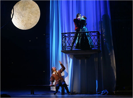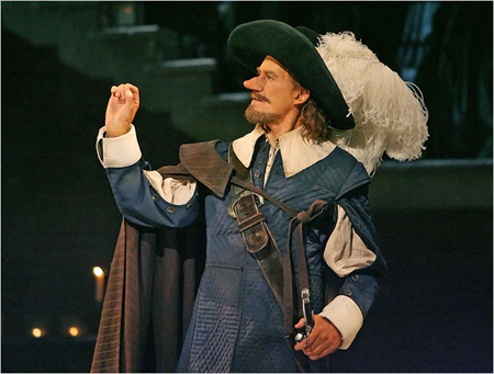 Si je choisis d'angliciser la particule de notre cher héros français c'est que ce spectacle New-Yorkais, sans mettre à mal la pièce de Rostand, lui distille un parfum très américain au travers de détails que certains n'auront peut-être pas relevé, mais qui indéniablement montrent que cette mise en scène est faite pour Broadway.