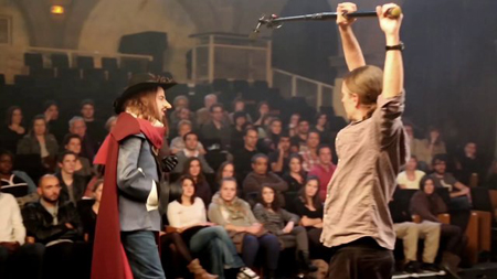 "En pleine représentation de Cyrano de Bergerac c'est le branle-bas de combat dans les coulisses, le comédien principal vient de s'évanouir. Pour sauver la pièce, Ludo, le réagisseur, doit monter sur scène et endosser le rôle de Cyrano." Mais si pour Ludo il s'agissait de tout autre chose que d'appliquer le seul principe du show must go on ? Nul doute qu'Edmond Rostand aurait applaudi à l'idée et à sa réalisation, servies par une belle équipe de comédiens et de techniciens. Autre innovation intéressante, Adrien Charpentier, directeur général de Katharsis Films qui produit le film en association avec Buffalo Corp, avec la participation des Machineurs, s'est appuyé sur KissKissBankBank pour boucler son budget. Commandez ce DVD ! Si ce n'est pas un ordre, c'est une chaude recommandation ! Pour commander le DVD, écrire à Katharsis Films lien "Lui écrire" en haut à droite de l'article   |