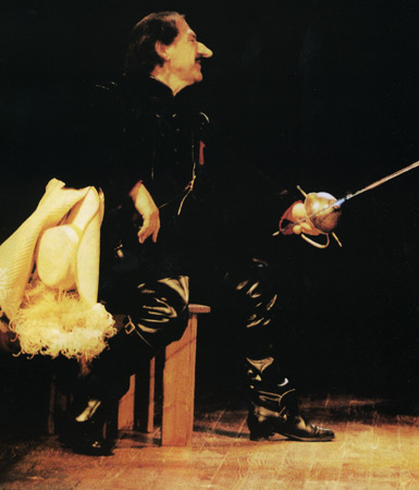 Claudie Jacquelin m'a alors convié à voir en Italie le Cyrano de Maurizio Scaparro et Pino Micol. Tout comme elle, je l'ai immédiatement adopté car il est au confluent des langages de théâtre dont je me sens le plus proche : celui de la Commedia dell'arte, celui de Molière, de Brecht, de Strehler : simple, pur, ludique, ardent, humain.