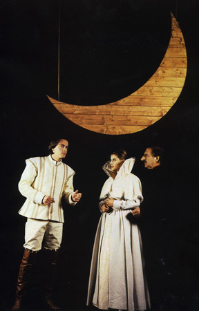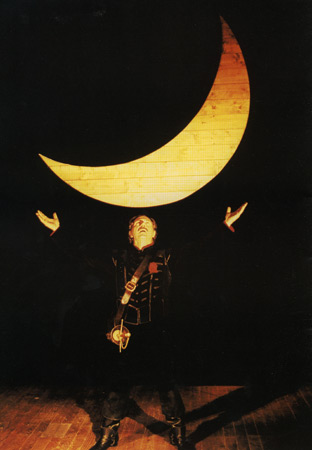 Un Cyrano très original ; la mise en scène s'appuie sur la tradition de la Commedia dell'arte où le verbe est haut et un peu forcé et où l'imaginaire du spectateur est mis à contribution.... la lune est omniprésente dans la nuit sombre... Peu de décors, ceux-ci descendent du ciel... un bac, une table, un balcon, la lune... tout est suggéré de la grouillante et vivante boutique de Ragueneau à la calme retraite de Roxane.
