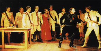 Plusieurs mois, dans la superbe fresque luxuriante de Savary, j'ai connu le rare et vivifiant plaisir de me faufiler sous le pourpoint de buffle, de fixer sur mon appendice nasal (déjà conséquent), l'oblongue capsule qui vous fait respirer des étoiles, de brailler ces dodécasyllabiques élucubrations (de bazar pour certains, de génie pour d'autres), qui vous conduisent si aisément du rire aux larmes, de l'amour à la mort... et avec quel panache !