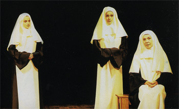 mais en fait, rien de tout cela. C'est seulement le théâtre qui dicte ses lois ; c'est la seule forme d'art qui ne peut vivre que dans un seul lieu, celui où l'officiant, c'est-à -dire l'acteur, vit, pense et aime ; et l'acteur se tourne vers son public, sans intermédiaire, mais avec les armes et les nuances que tout le monde connaît, différentes de nations à nations, de ville à ville, peut-être même de groupe à groupe.