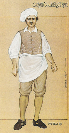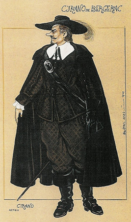 Constant Coquelin era, en los años 80 y 90 del siglo XIX, el actor más popular y reconocido de Francia y de media Europa. Era muy bajito, feo y tenÃa la voz chillona, por lo que no podÃa representar los frecuentes papeles de galán que habÃa en la escena. Cuando Coquelin ya tenÃa 50 años habÃa agotado el repertorio de los feos del teatro clásico francés. Y fue entonces cuando se fijó en un treintañero que acababa de estrenar una comedia en verso que tuvo un gran éxito: Edmond Rostand, un marsellés. Coquelin le animó a escribir para él y ambos llegaron al acuerdo de recrear la figura de Savinien Cyrano de Bergerac, un escritor de la primera mitad del siglo XVII, libertino, espadachÃn, miembro de la guardia noble y con una nariz inmensa. ?Hemos podido comprobar que una nariz grande es muestra de que el hombre es espiritual, cortés, afable, noble y liberal?, dijo el auténtico Cyrano de Bergerac.