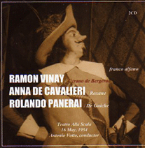 dirigé par Markus Frank. On vient aussi de trouver l'enregistrement sur CD, diffusé par un particulier, avec Anna de Cavalieri en Roxane, et Rolando Panerai en de Guiche. L'enregistrement date du 6 mai 1954 au Teatro Alla Scala, sous la direction de Antonio Votto.